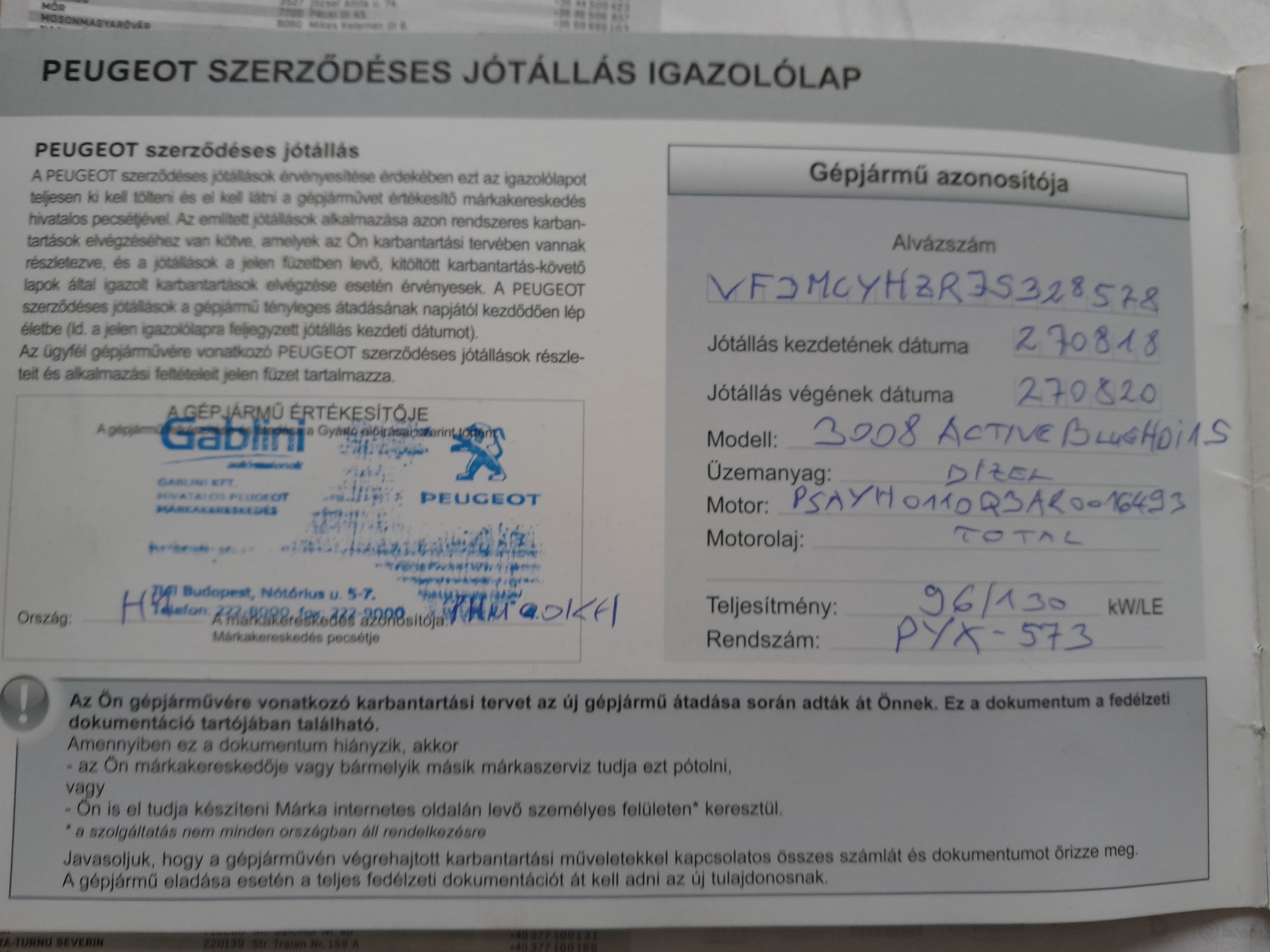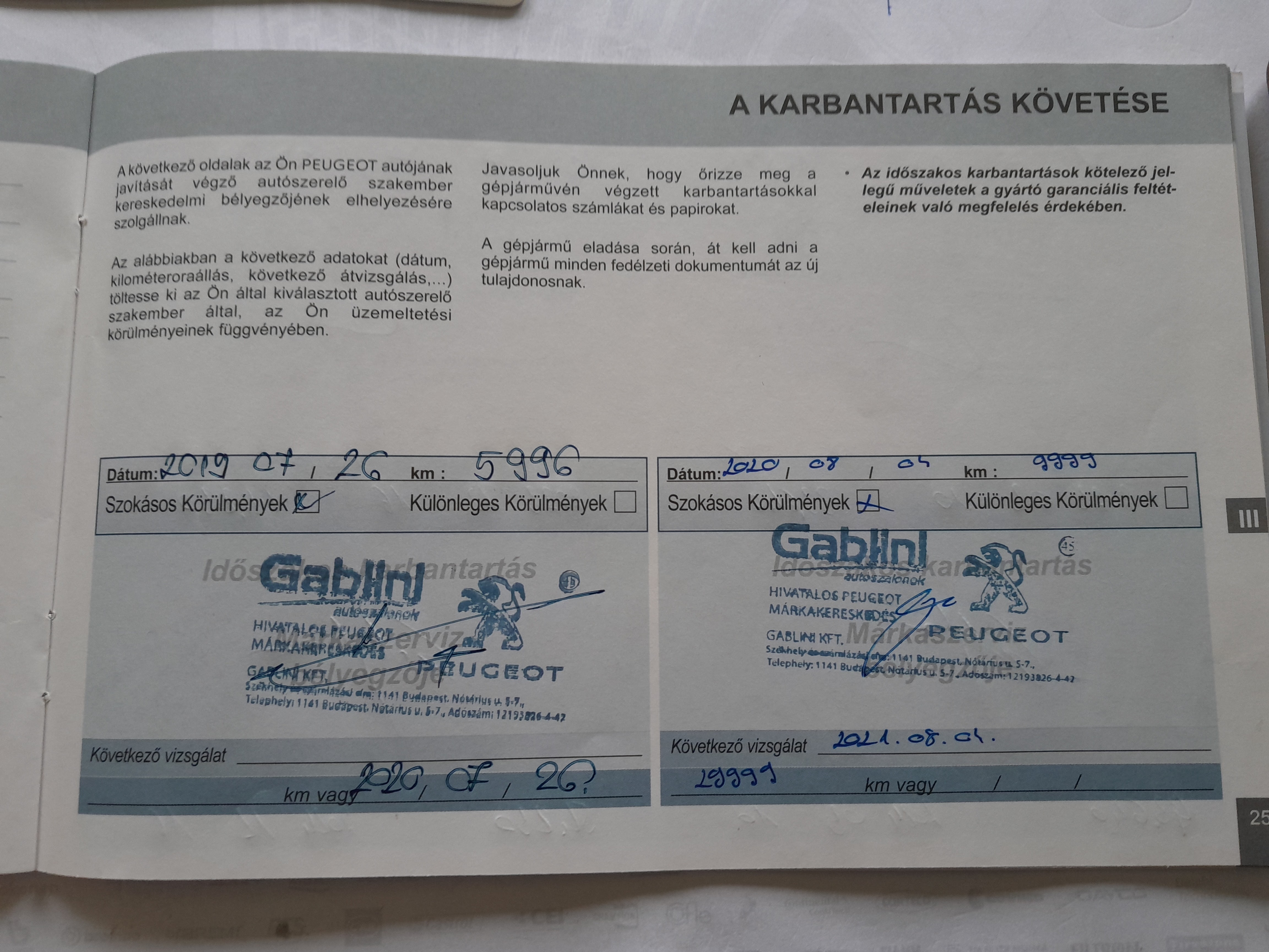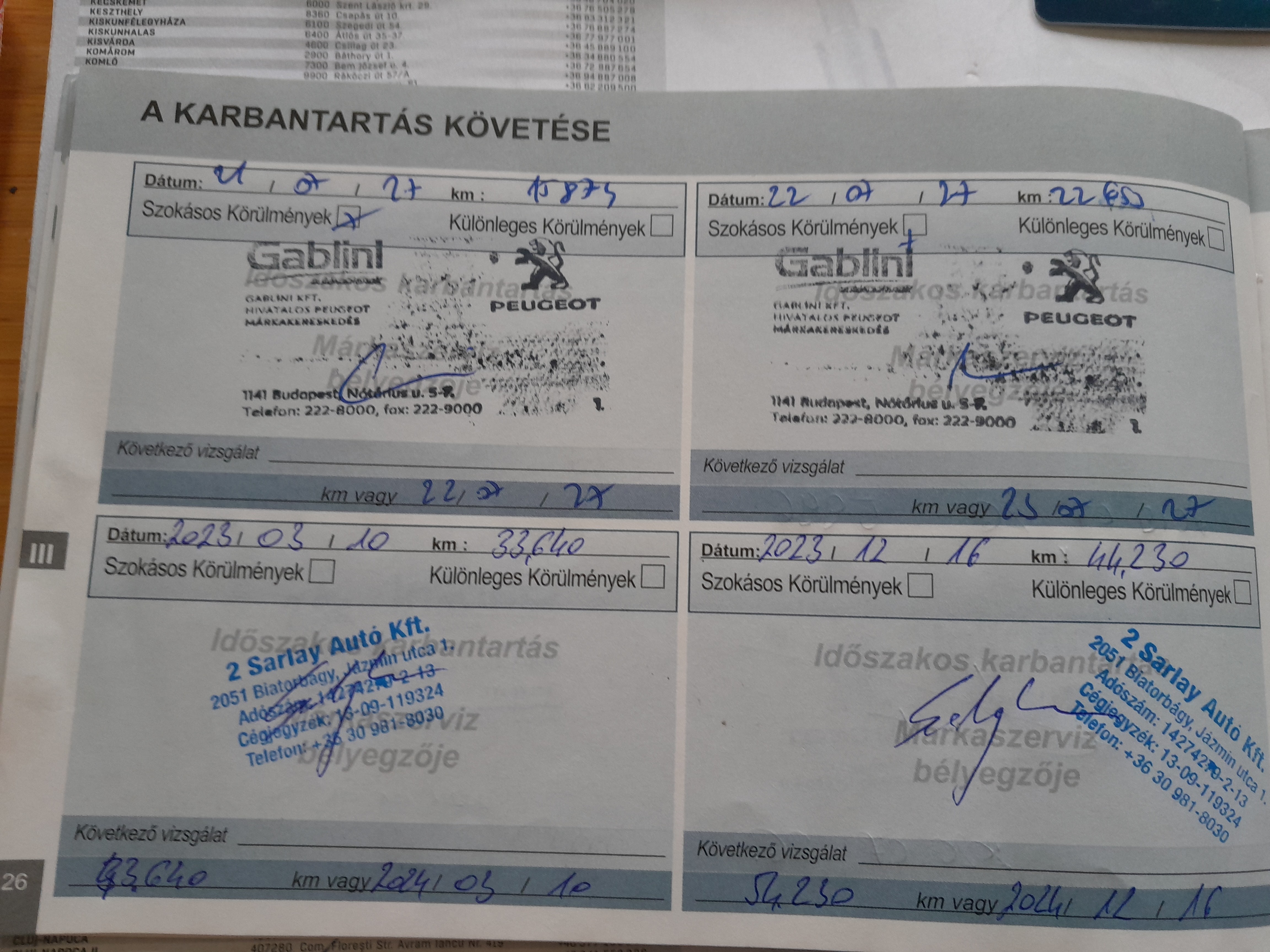 - szervizkönyv