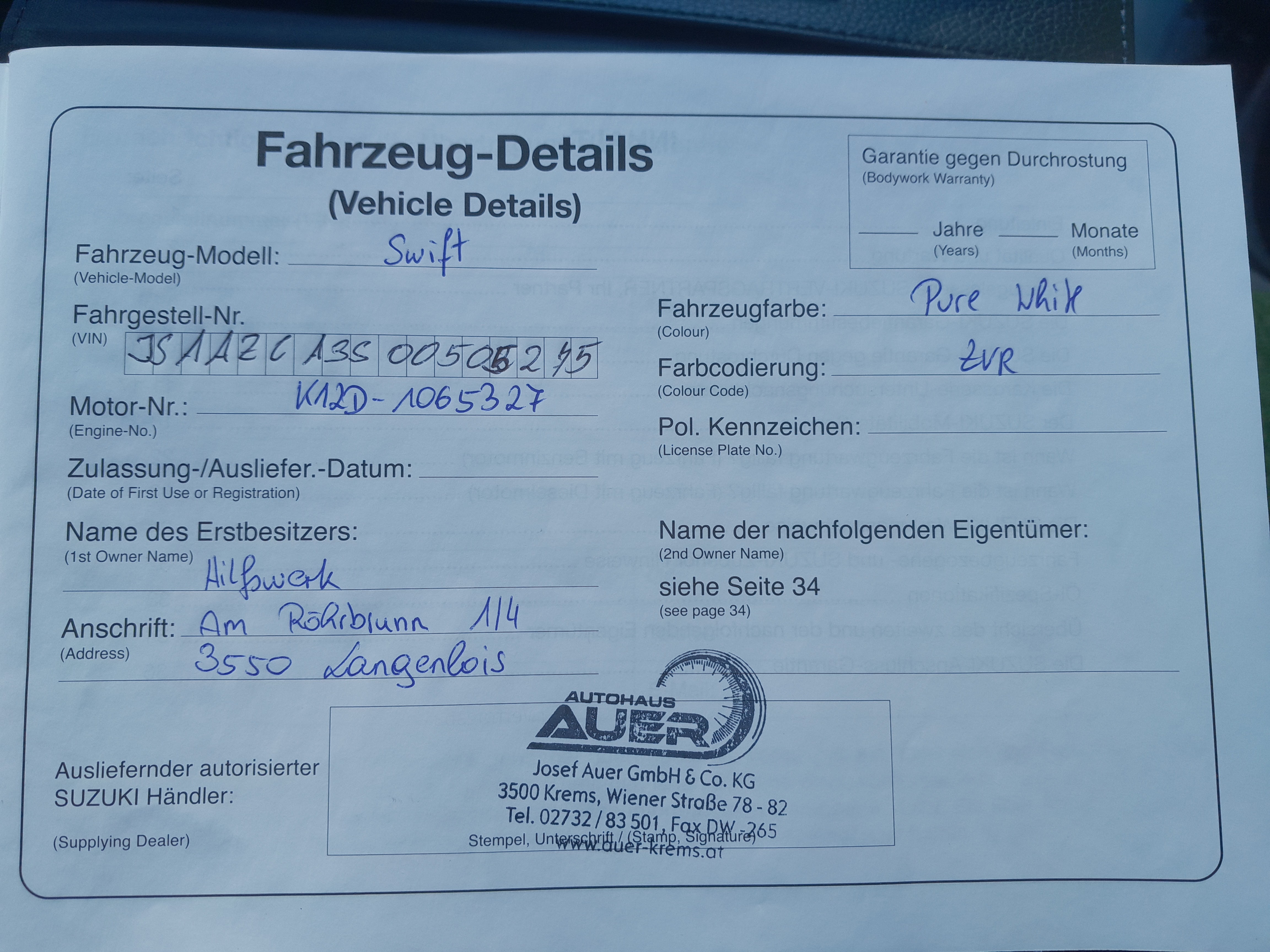- első tulajdonostól